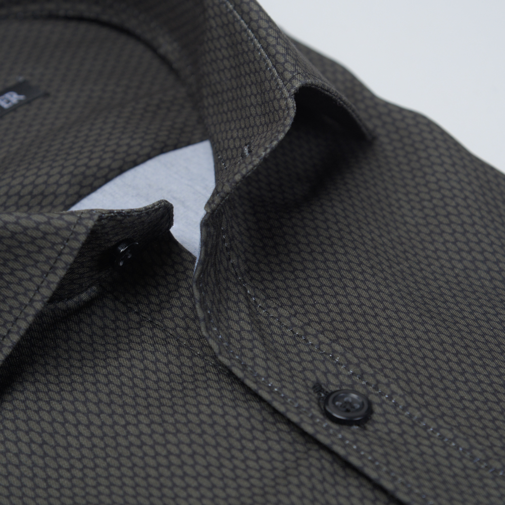 Πουκάμισο Χακί με Μικροσχέδιο Modern Fit