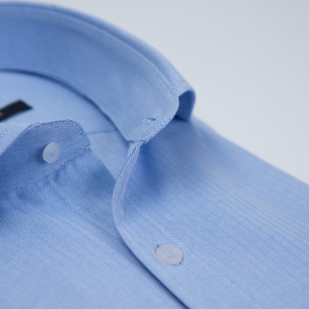 Πουκάμισο Γαλάζιο με Herringbone Ύφανση
