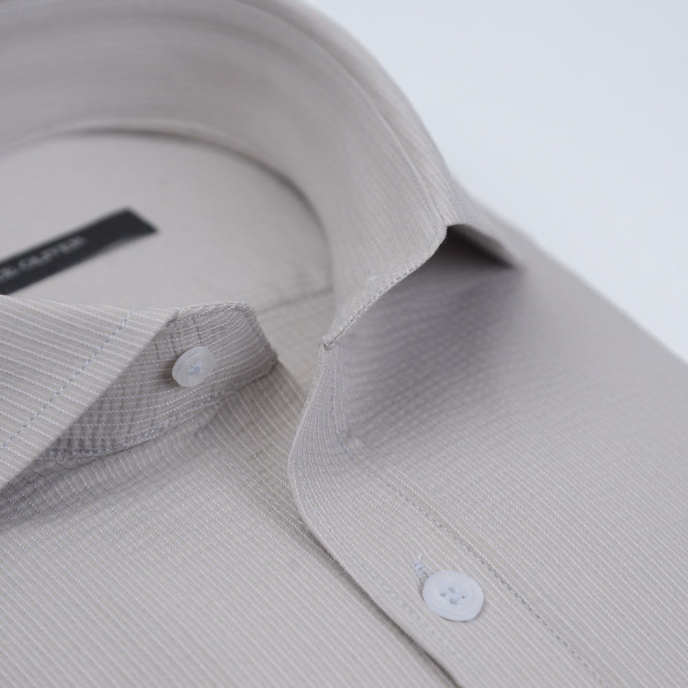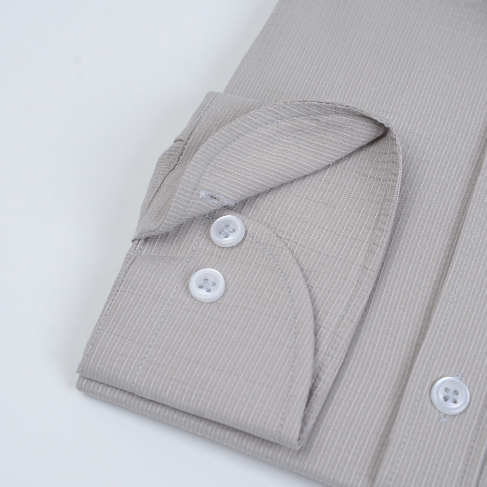 Πουκάμισο Μπεζ με Απαλή Ρίγα Comfort Stretch & Easy Iron Modern Fit
