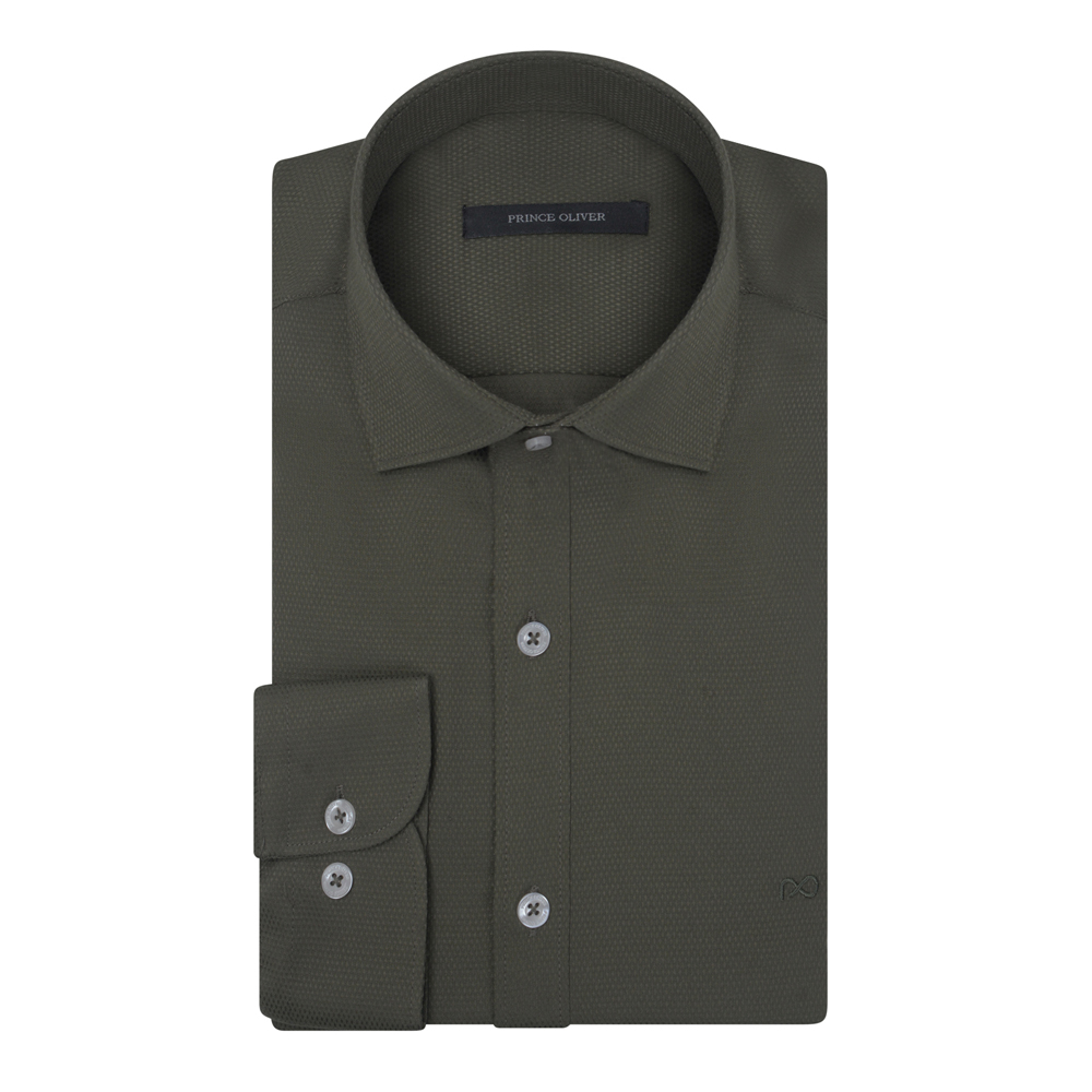 Πουκάμισο Λαδί με Μικροσχέδιο Modern Fit