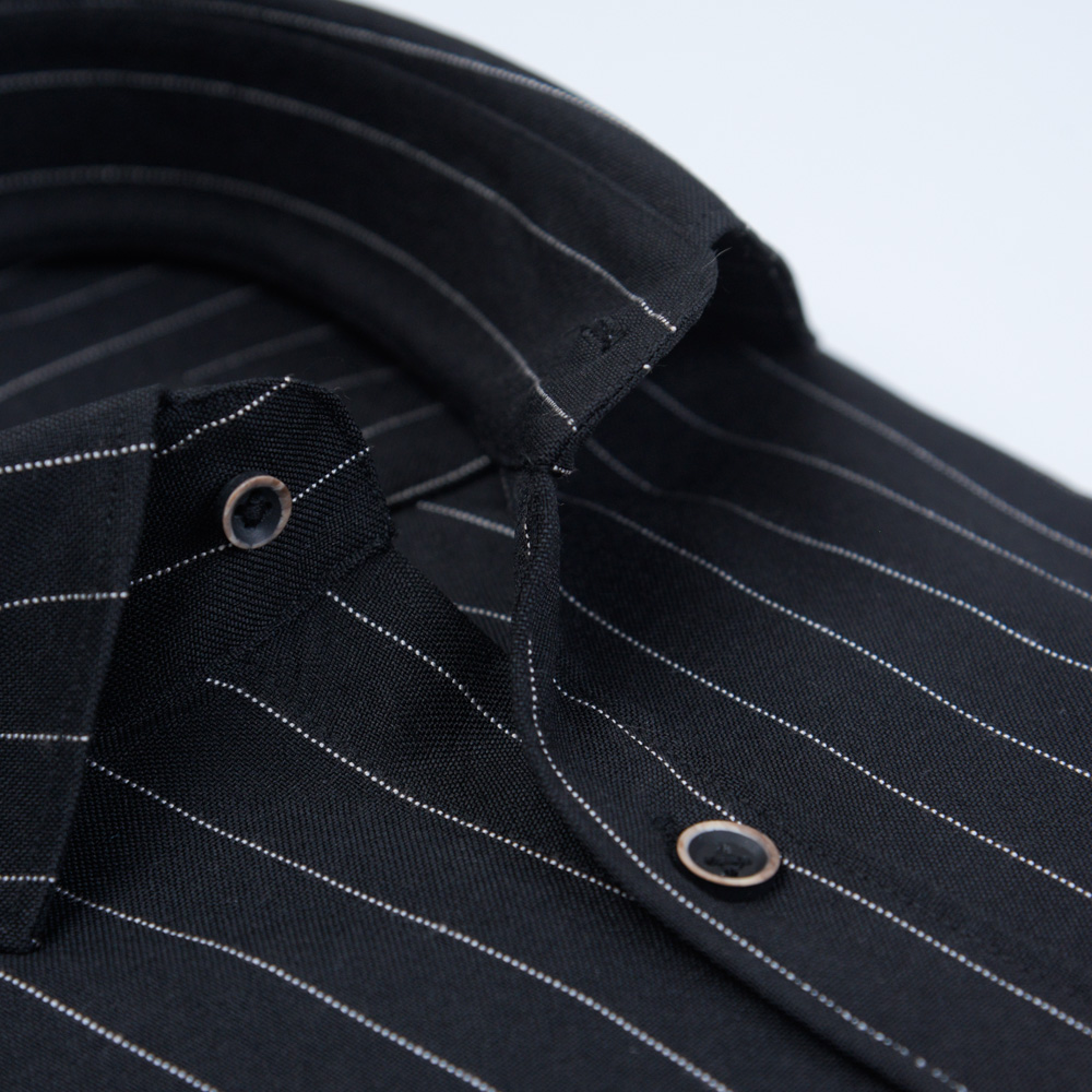 Πουκάμισο Μαύρο με Απαλή Ρίγα Modern Fit