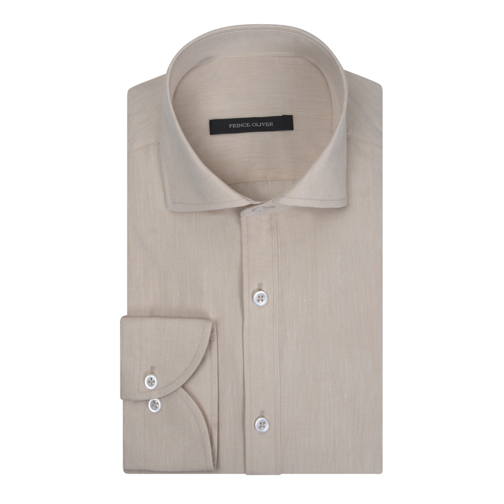 Πουκάμισο Μπεζ in Cotton Modern Fit