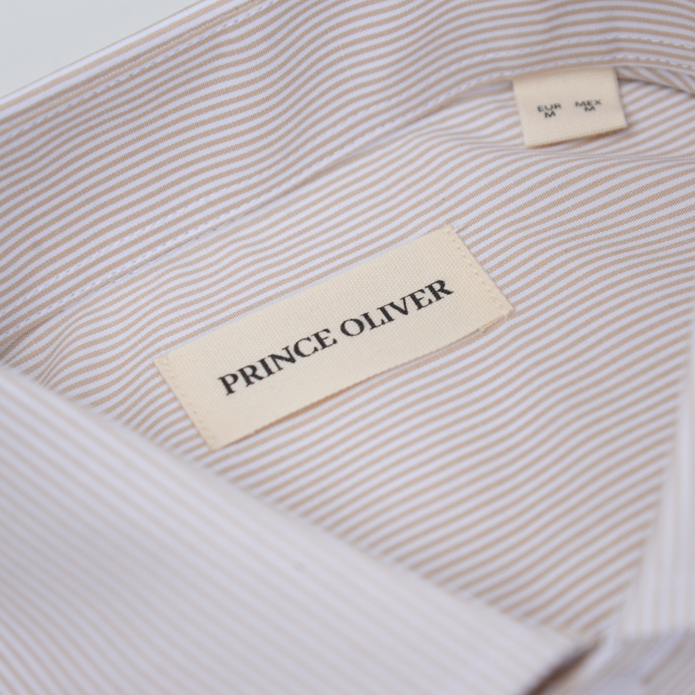 Πουκάμισο Μπεζ Ριγέ in Premium Cotton