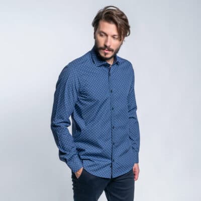 Πουκάμισο Μπλε Με Μπλε Μικροσχέδιο