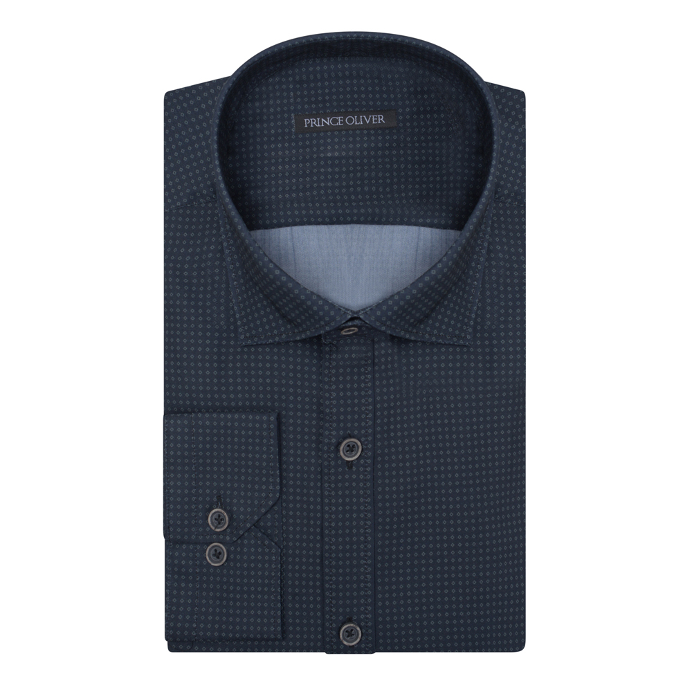 Πουκάμισο Μπλε Σκούρο με Μικροσχέδιο Modern Fit