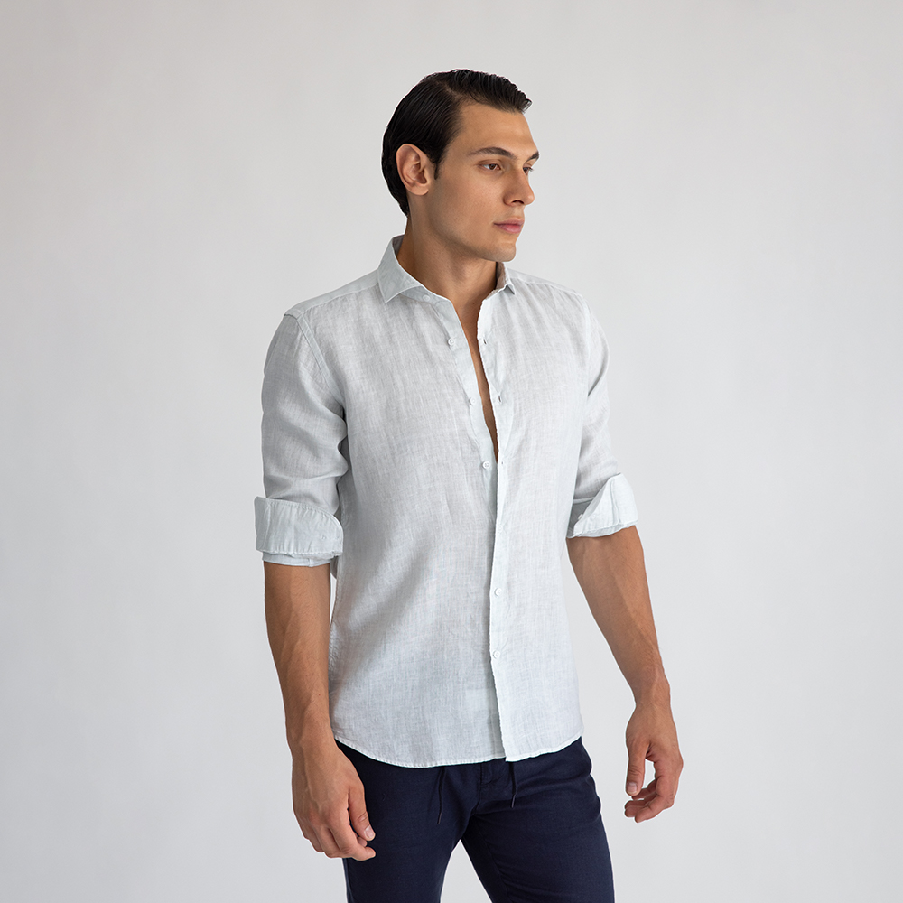 Premium Πουκάμισο Γκρι Ανοιχτό 100% Super Fine Linen (Modern Fit)
