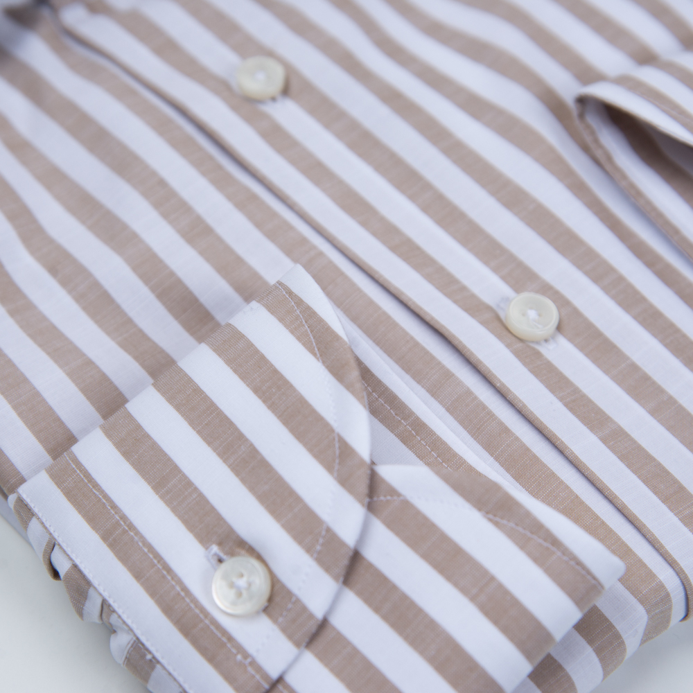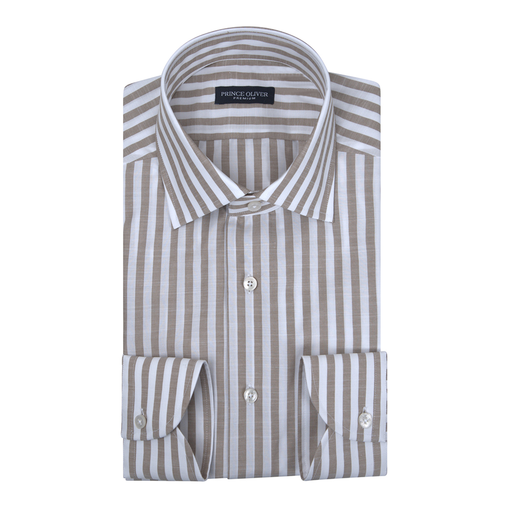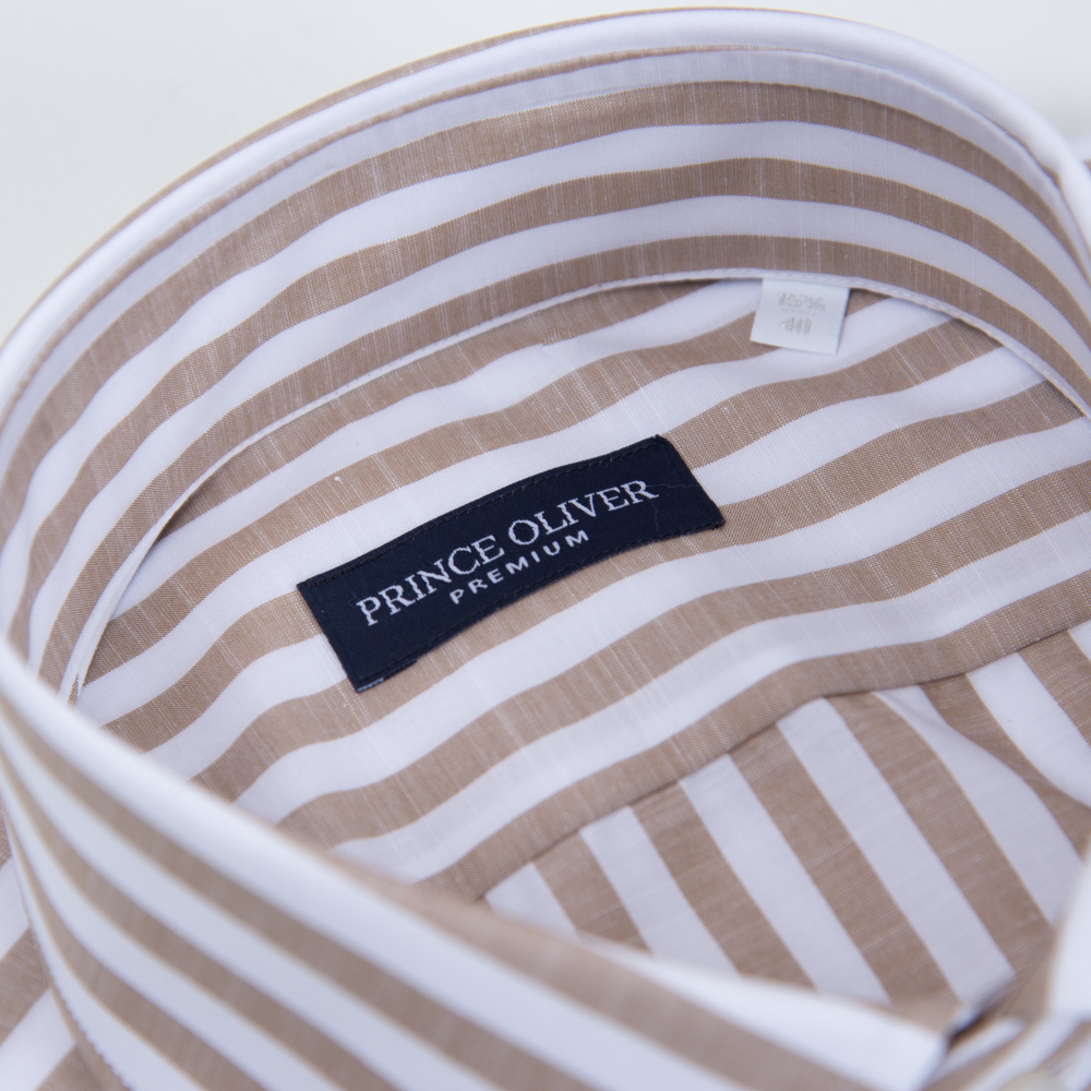 Prince Oliver By XACUS Πουκάμισο Travel Ριγέ Μπεζ in Cotton Modern Fit
