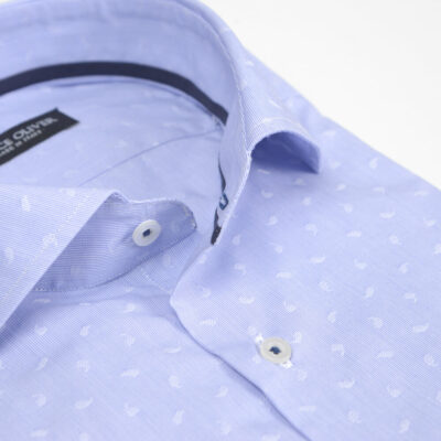 Superior Πουκάμισο Σιέλ με Μικροσχέδιο 100% Fine Cotton (Modern Fit)