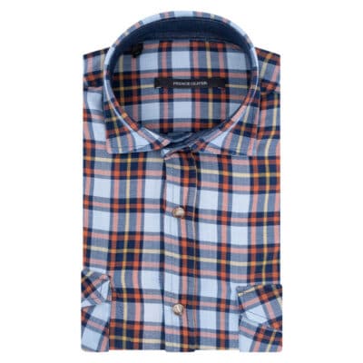 Πουκάμισο Καρό Μπλε/Πορτοκαλί/Λευκό/Κίτρινο 100% Cotton (Modern Fit)