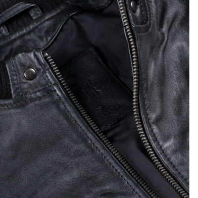 Bomber Jacket Μαύρο in Sheep Nappa Leather Modern Fit