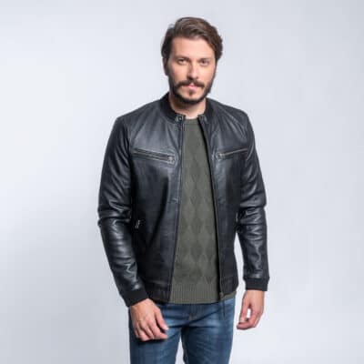 Racer Jacket Μαύρο in Sheep Nappa Leather Modern Fit