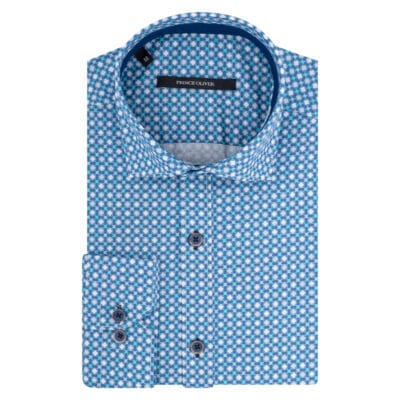 *Prince Oliver Πουκάμισο Μπλε με Μικροσχέδιο (Modern Fit)