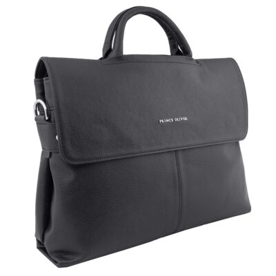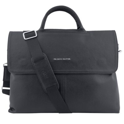 Prince Oliver Ανδρική Tσάντα Χαρτοφύλακα Μαύρη Eco Leather