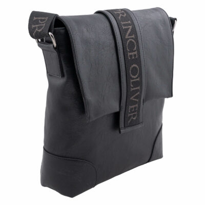 Prince Oliver Ανδρική τσάντα messengers bag μαύρη eco leather