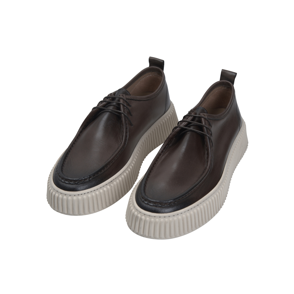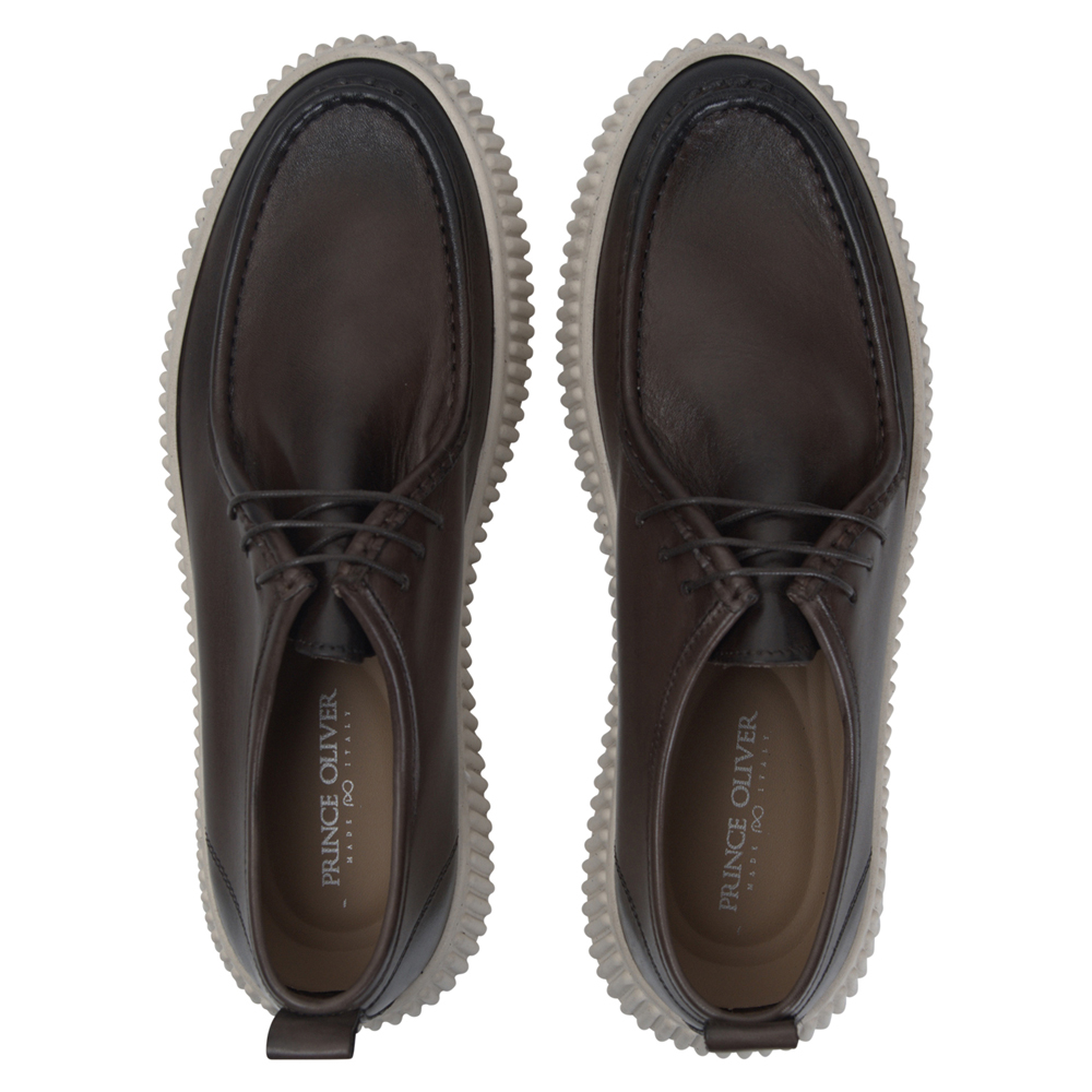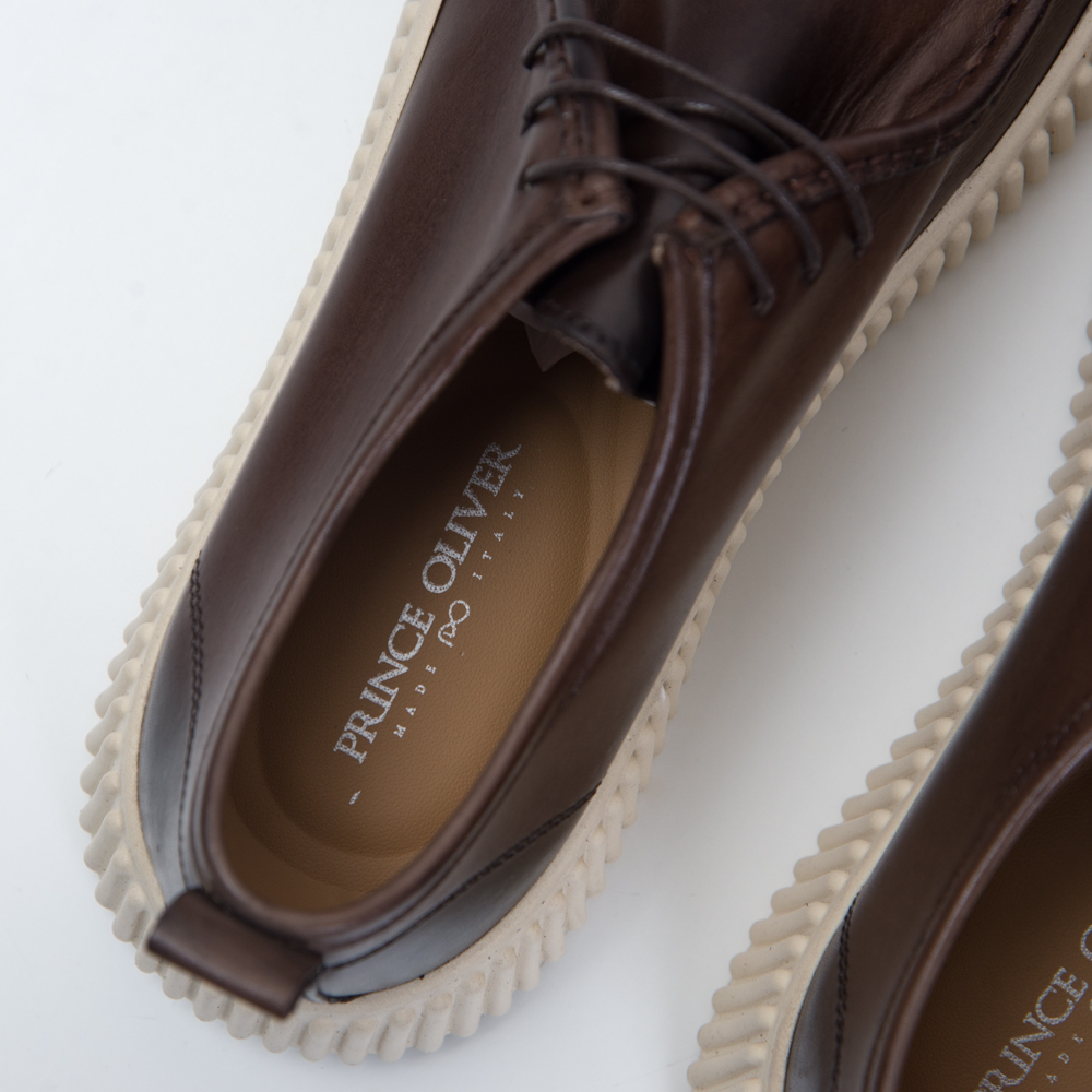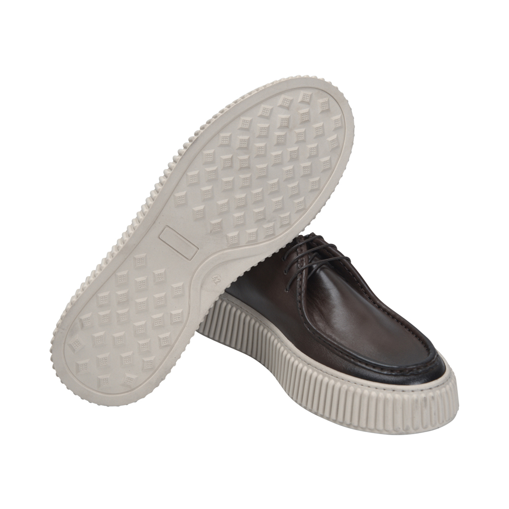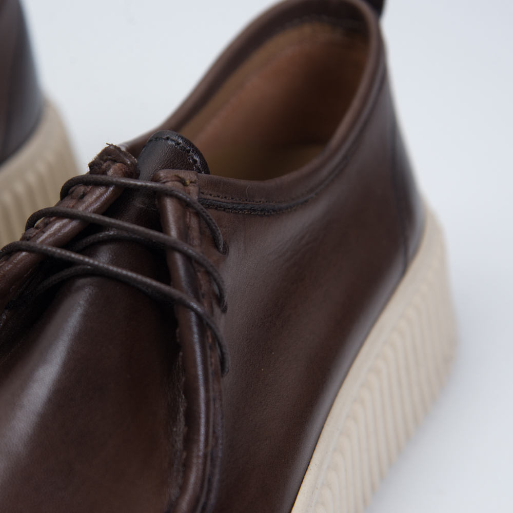 Δερμάτινα Καφέ Παπούτσια με Off-White Ραβδωτή Σόλα
