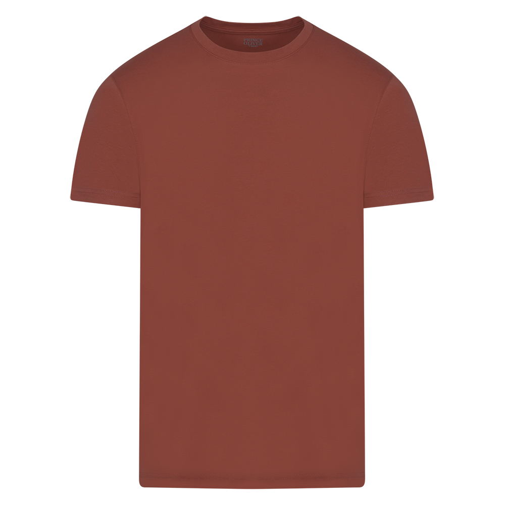 Crew Neck Τ-Shirt Κεραμιδί Cotton Stretch με Logo στην Πλάτη Modern Fit
