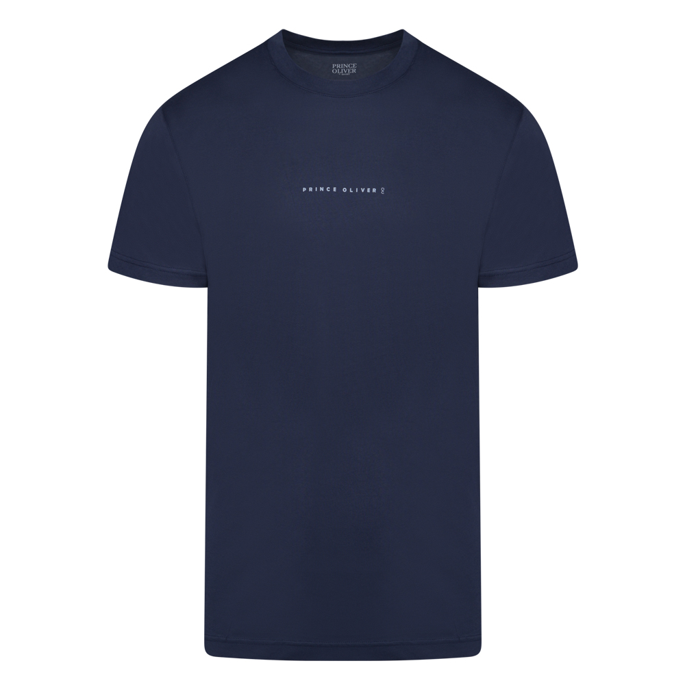 Crew Neck Τ-Shirt Μπλε Σκούρο με Logo Print in Cotton Modern Fit
