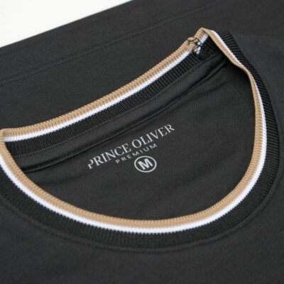 Premium Τ-Shirt Μαύρο in Cotton with Stripe Details (Modern Fit)
