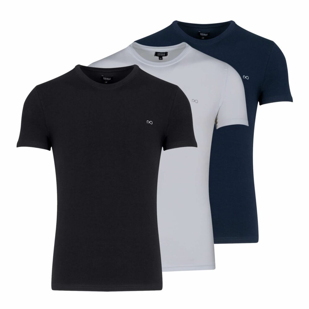 Σετ 3 T-shirt all seasons round neck μαύρο/λευκό/μπλε σκούρο Cotton Stretch (Comfort Fit)