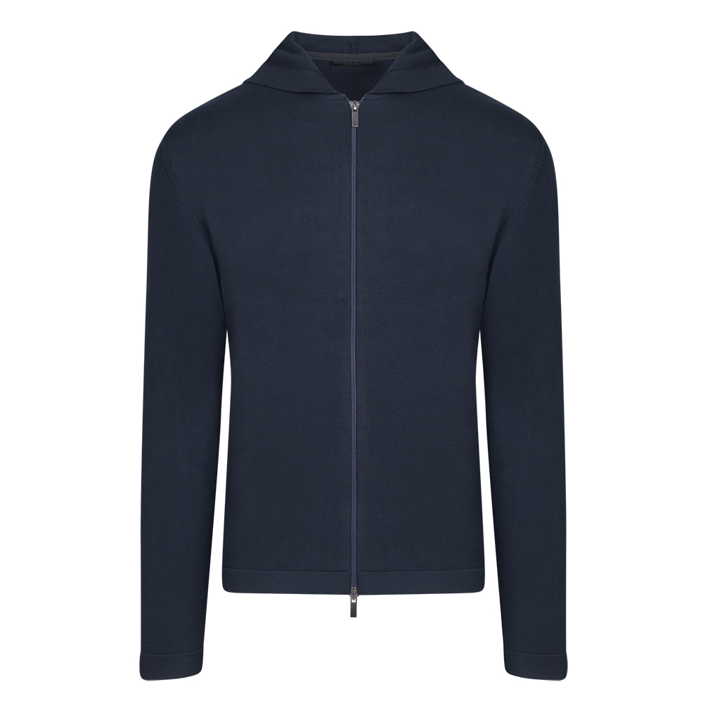 Full Zip Hooded Ζακέτα in Cotton Μπλε Σκούρα Modern Fit