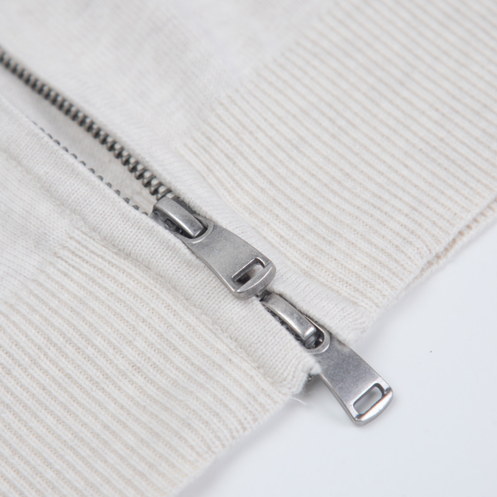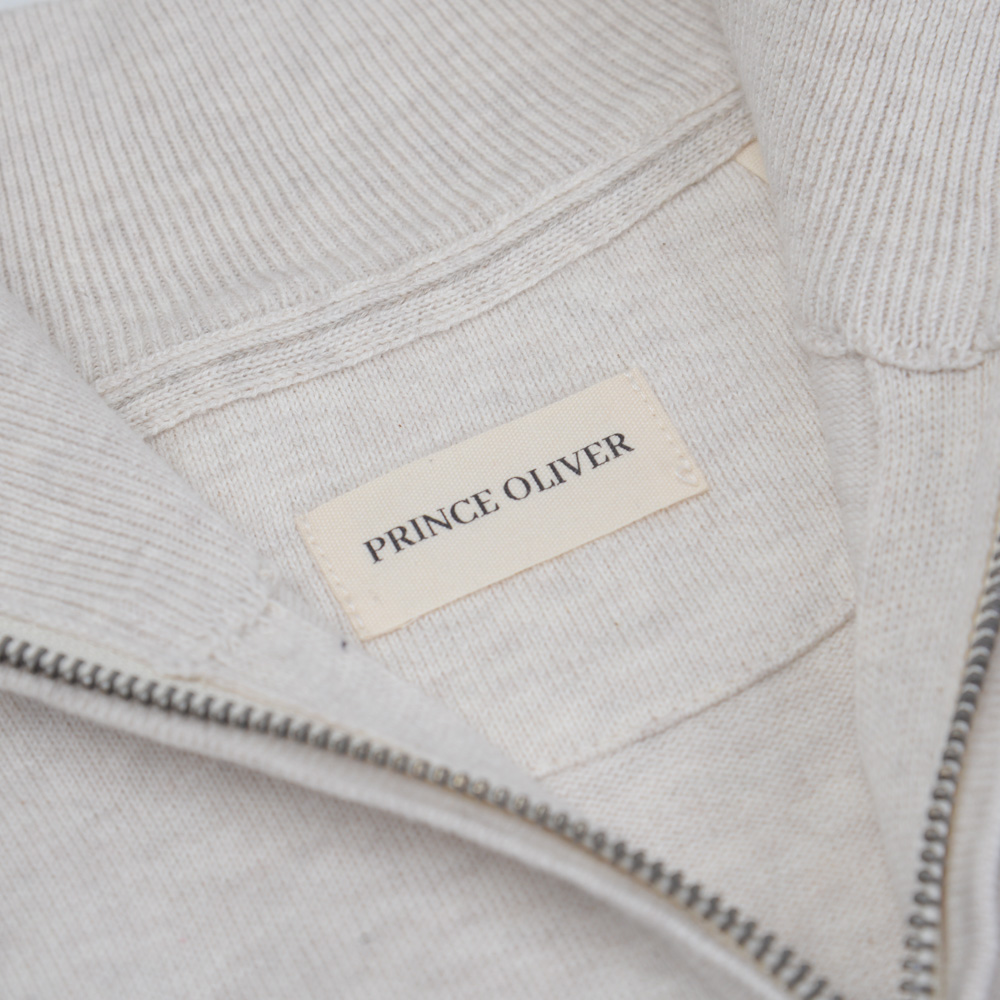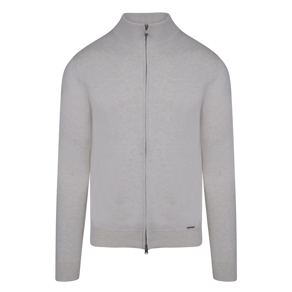 Full Zip Ζακέτα Εκρού in Cotton Modern Fit