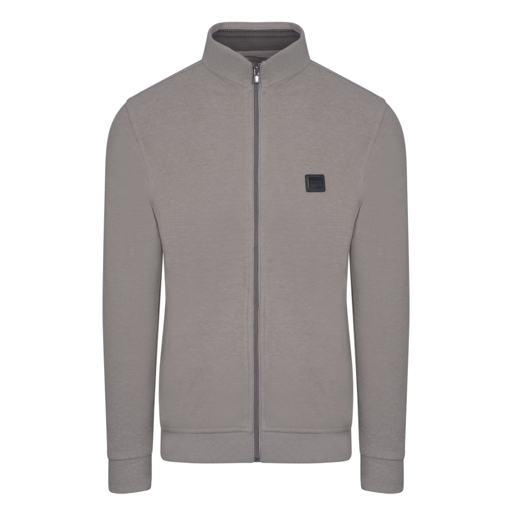 Premium Full Zip Ζακέτα με Logo Badge Μπεζ Modern Fit