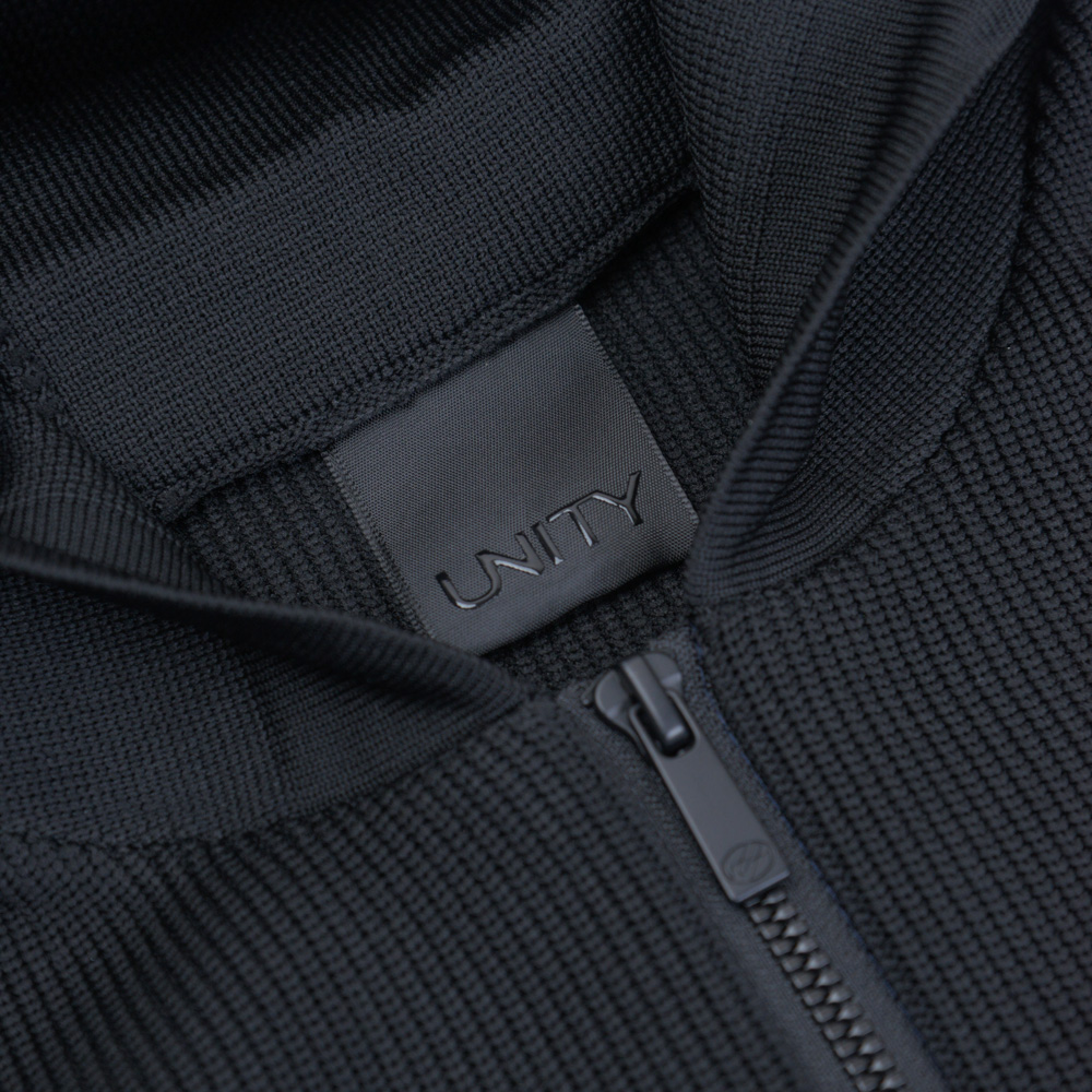 UNITY “CHRIS” Full Zip Πλεκτή Ζακέτα με Κουκούλα και Jacquard Λεπτομέρειες Μαύρη Regular Fit