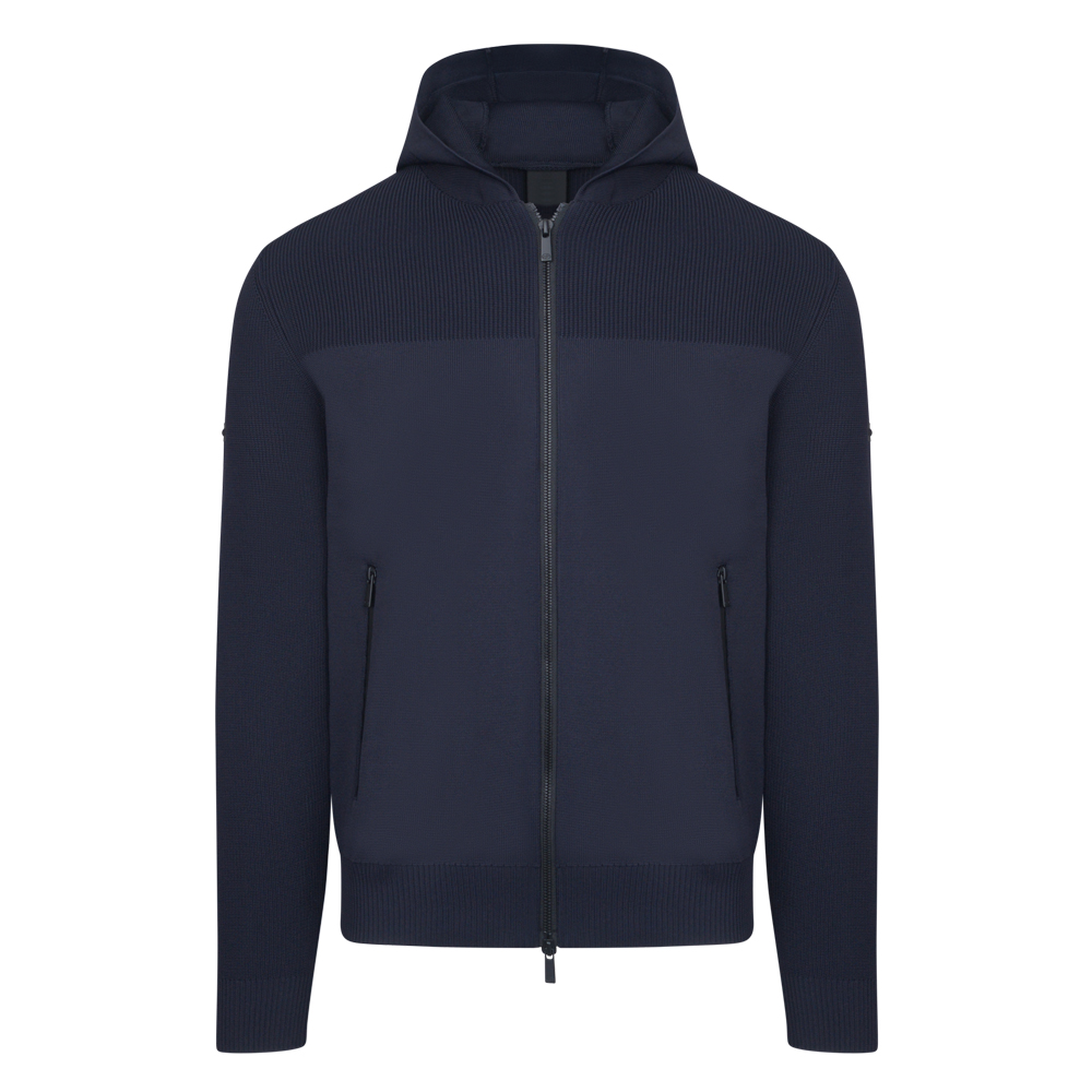 UNITY “CHRIS” Full Zip Πλεκτή Ζακέτα με Κουκούλα και Jacquard Λεπτομέρειες Μπλε Σκούρα Regular Fit