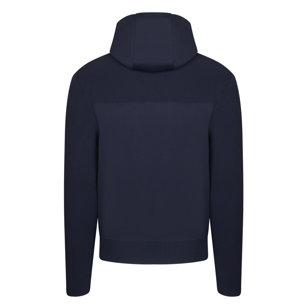 “CHRIS” Full Zip Πλεκτή Ζακέτα με Κουκούλα και Jacquard Λεπτομέρειες Μπλε Σκούρα
