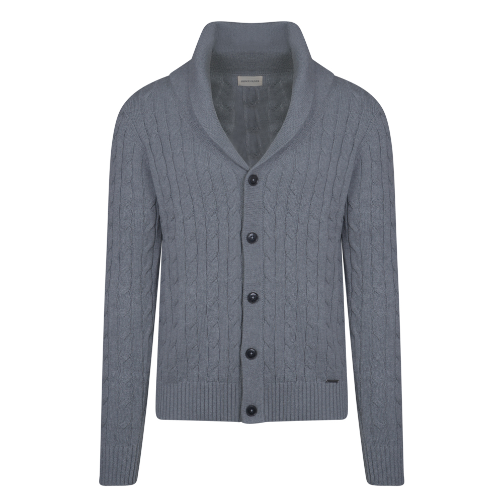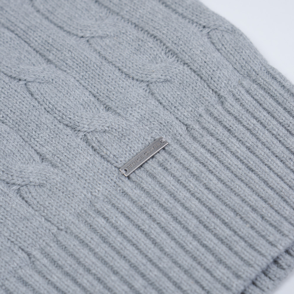 Ζακέτα Γκρι με Cable-Knit Πλέξη in Cotton Modern Fit