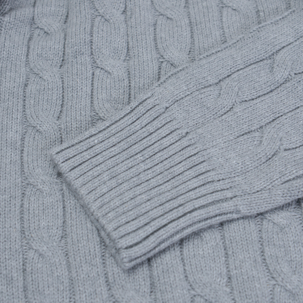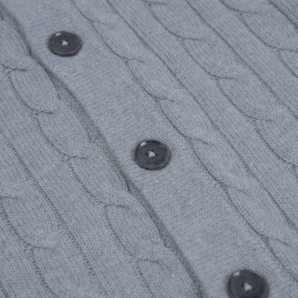 Ζακέτα Γκρι με Cable-Knit Πλέξη in Cotton