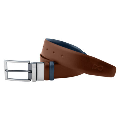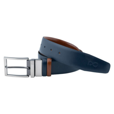 Ζώνη Formal Διπλής Όψης Μπλε/Καφέ in Leather
