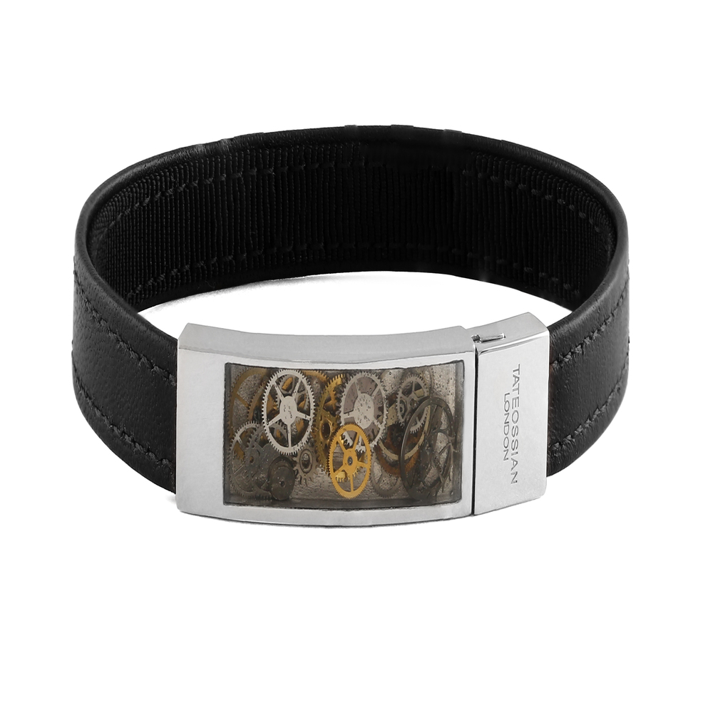 TATEOSSIAN Βραχιόλι Μαύρο από Δέρμα και Ανοξείδωτο Ατσάλι με Διακοσμητικά Γρανάζια