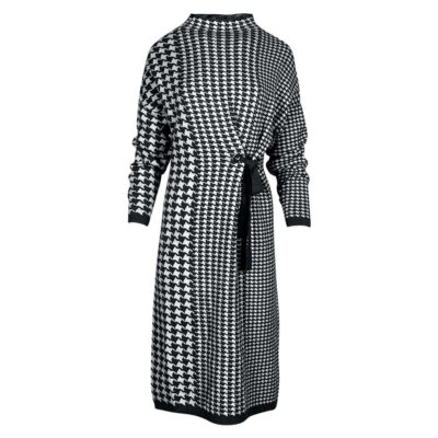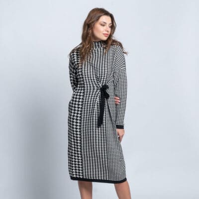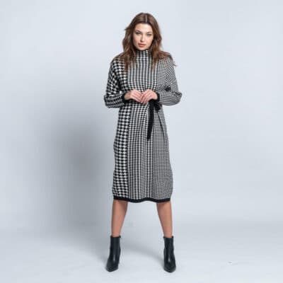 Γυναικείο Φόρεμα Πλεκτό Pied-de-poule Μαύρο/Λευκό