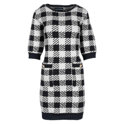Prince Oliver Γυναικείο Φόρεμα Πλεκτό Pied-de-poule Λευκό/Μαύρο