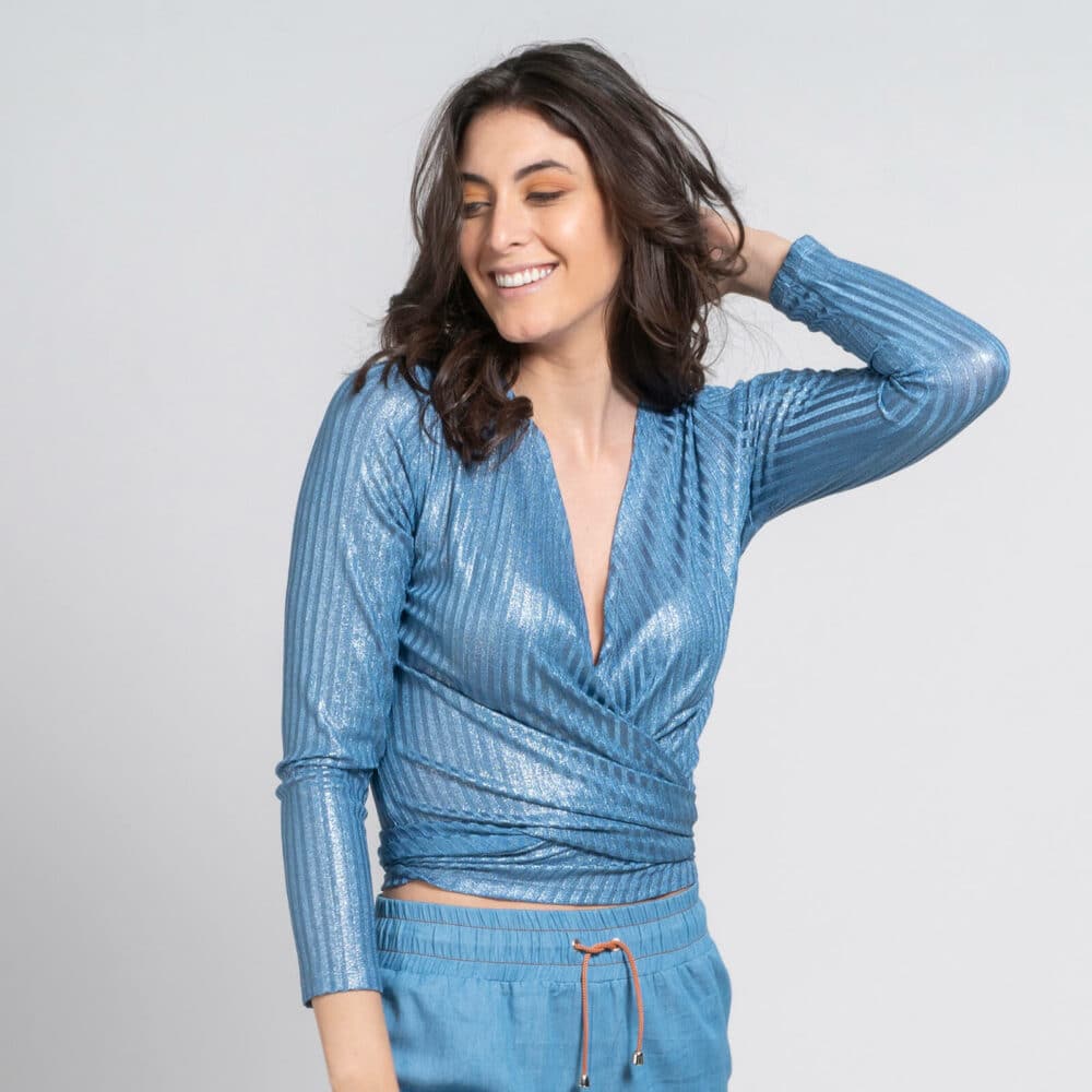 Γυναικεία Μπλούζα Κρουαζέ Σιέλ με Δέσιμο