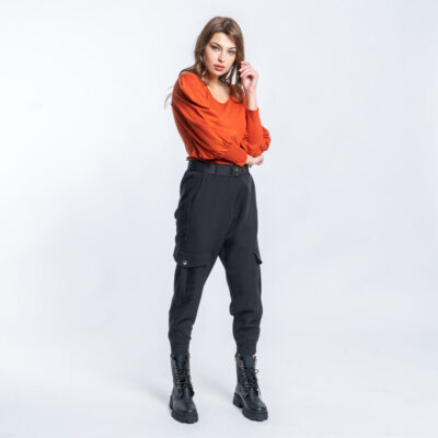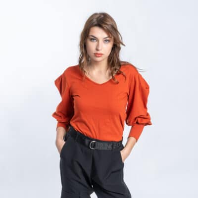 Γυναικεία Μπλούζα Πορτοκαλί με Φουσκωτά Μανίκια 100% Cotton
