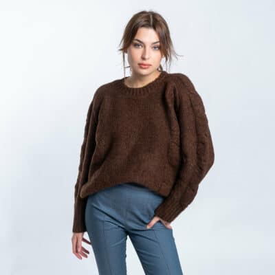 Γυναικεία Πλεκτή Μπλούζα Round Neck Καφέ