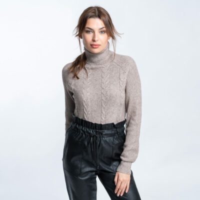 Γυναικεία Πλεκτή Μπλούζα Με Πλέξη Ζακάρ Μπεζ