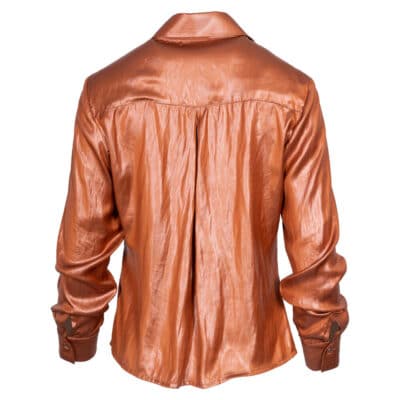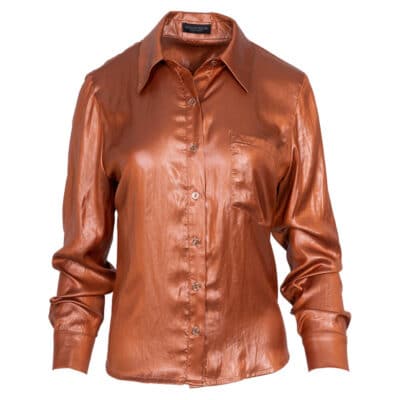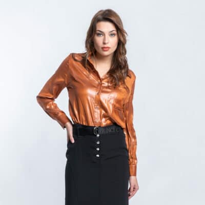 Για ένα ανεπάντεχο πιο trendy συνδυασμό υιοθέτησε στην φετινή σεζόν αυτό το πουκάμισο με την σαγηνευτική γυαλάδα Είναι must have για όλες τις ώρες ,το πρωί με ένα μαύρο παντελόνι και ένα ζευγάρι loafers και το βράδυ με μια pencil φούστα και γόβες.