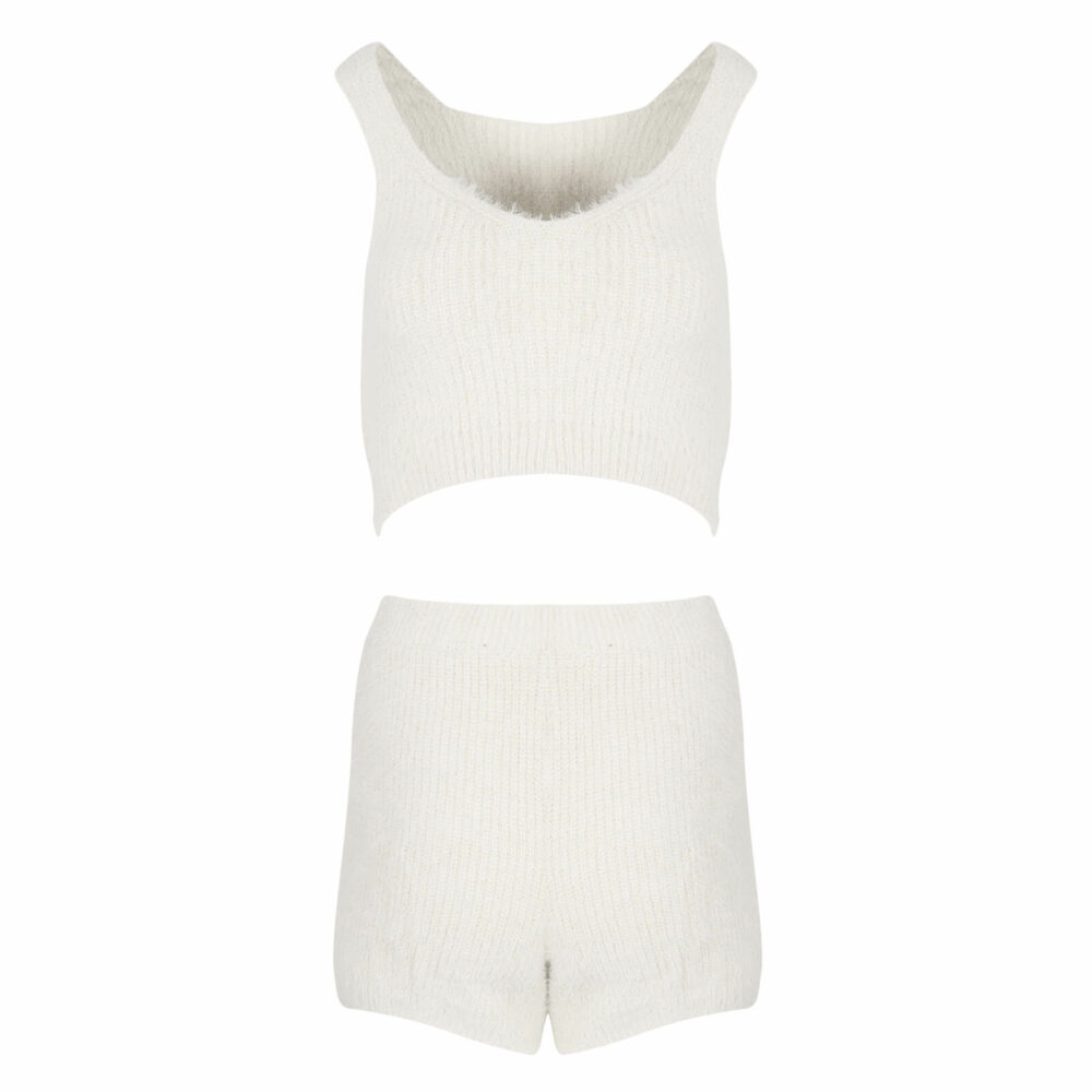 Γυναικείο Σετ Ζακέτα/Τοπ/Σορτς Εκρού