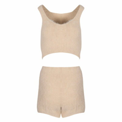 Γυναικείο Σετ Ζακέτα/Τοπ/Σορτς Μπεζ